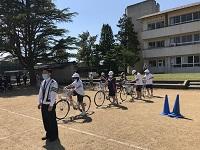 珠洲警察署より、お二人の署員を迎え行いました。生徒は一人ずつグラウンドの道路を信号機や標識に注意して自転車で走行しました。走り出しの右後方確認や、交差点の二段階横断など基本的な運転ルールを学ぶことができました。生徒からは「知らないこともあったので、気を付けます」「今日の帰り道から気を付けます」などの感想が出ました。安全に通学できる三中生を目指しましょう。