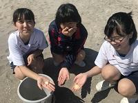 総合的な学習の時間では、海辺の生物を知ろう、ということで浜へ出かけました。たくさんの貝殻を拾って不思議を発見していました。色の不思議、形の不思議、模様の不思議、穴の不思議、・・・谷内先生によると、何かしら理由があるそうです。どうぞ、その理由を究明して教えてくださいね。