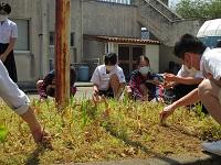 6月2日(火)生活環境委員会によるチューリップ球根掘りがありました。中庭の花壇からチューリップの球根を掘り出し、次の花壇づくりに備えるためです。