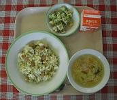 今日は「こまつなの日」ということで珠洲市のこまつなを使ったピラフをみんなで食べました。こまつなは油で炒めることで苦みが軽減されます。そのため、調理員さんが細かく刻んで油で丁寧に炒めてくださっていたので、苦みもなくとってもおいしくいただきました。自分の生まれ育った土地の食べ物や、手作りのものをいただけることはとても幸せなことですね。
