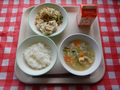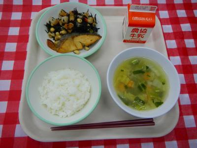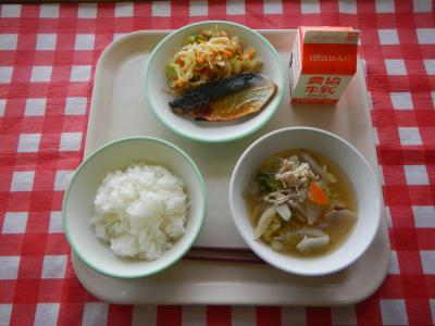 11/6 ご飯、牛乳、さばの塩麹焼き、ちくわの梅肉和え、めった汁