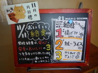 今月の月目標が「和食の良さを知ろう」なのです、今月は和食献立が多いように思います。