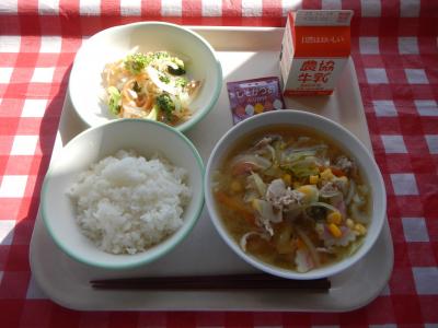 11/5 ビビンバ、牛乳、チンゲン菜の卵スープ、セノビーゼリー