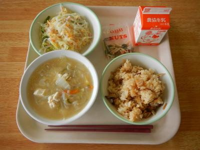 生徒に人気のメニューです。家で作ると炊飯器にツナのにおいが残る気がして、家ではなかなかできないので、私もとても楽しみな献立です。