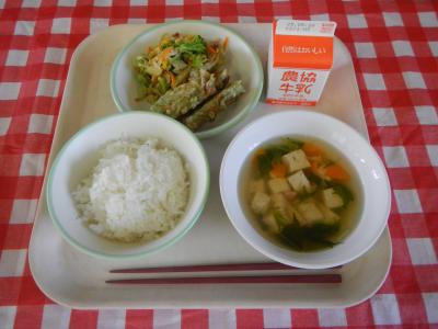 6/5 キムタクご飯、牛乳、バンサンスー、ワンタンスープ