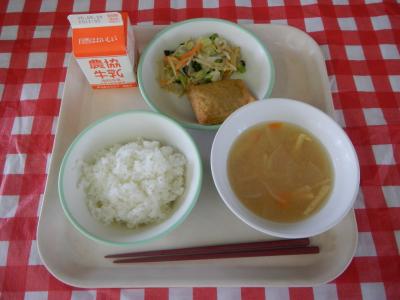 6/2 ご飯、牛乳、さつま揚げの生姜煮、切干大根のごま醤油、白菜のみそ汁