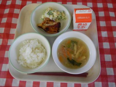 5/28 ご飯、牛乳、鶏肉の塩麹焼き、ポテトサラダ、大根のみそ汁