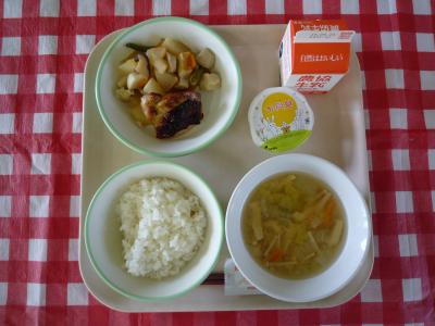でもこのナタデココが嬉しいですね♪今日は2年生の育てたじゃがいもを使ったカレーライスでした。