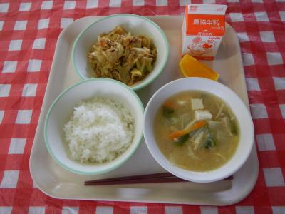 今日は生徒に愛情をこめて、献立にオレンジをいれました!