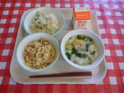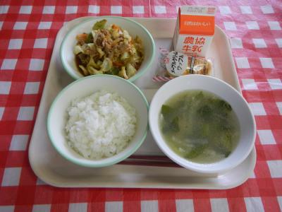 6/2 ご飯、牛乳、さつま揚げの生姜煮、切干大根のごま醤油、白菜のみそ汁