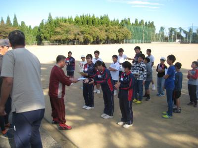 10月14日(土)午後から三崎中学校の運動場で青年福祉員の方々による,小中グランドゴルフ大会がありました。三崎中学校からは11名が参加しました。小学生の16名とともに、グランドゴルフを楽しみました。男子の部では、中学生が6位まで入賞し、1位は48打の成績でした。女子の部は、5位までが入賞し、1位は57打の成績でした。良い天気にも恵まれて楽しむことができました。青年福祉委員のみなさん、ありがとうございました。