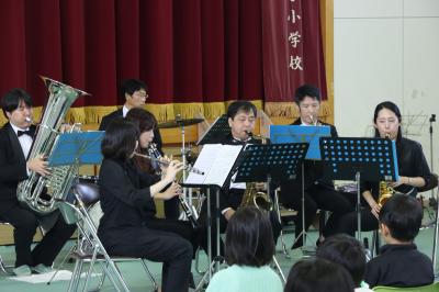 10月6日(金)みさき小学校の体育館でオルカブラス演奏会がありました。小学生と中学生が一堂に会して現役で活躍されているプロの生演奏を楽しむことができました。司会者の楽しい進行とともに,トランペット,フルート,ホルンなどの金管楽器の迫力を体感することができました。また,最後に楽器に触れて,実際に吹いてみる体験活動もあり,音が出る度に生徒の笑顔が溢れていました。オルカブラスのみなさん,ありがとうございました。