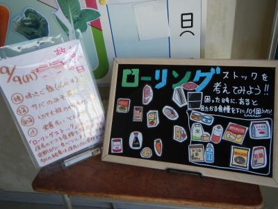 ローリングストックの中に自分だったら何を入れるか?を意識してもらうための掲示物を作りました。