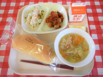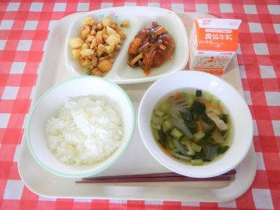 給食ではカルシウムがとれるような献立や、よく噛む献立が入っています。