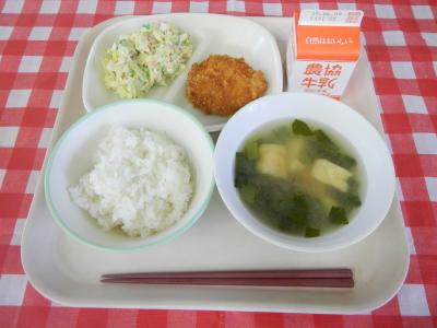 2023/5/30 ごはん、牛乳、さばのカレー揚げ、ごまマヨサラダ、まり麩のすまし汁