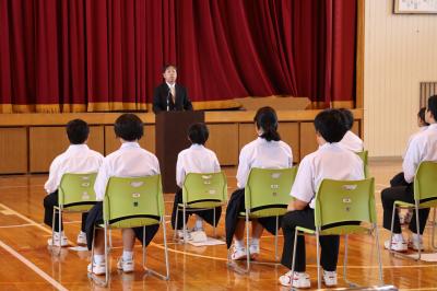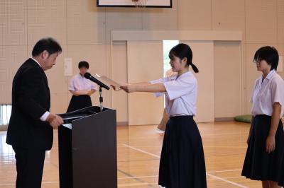 7月20日(木)、1学期の終業式を行いました。校歌斉唱の後、学校長の講話がありました。始業式でお話しされた「心のスイッチ」について、1学期に意識的に取り組めたかどうかを聞かれた後、大谷翔平選手のゴミを拾う行為についてもお話をされました。夏休みに向けて、再度、心のスイッチを入れて、頑張りましょう。最後に、みなさん、夏休み中も、交通事故、地震などの自然災害、感染症等に注意して楽しく、規則正しい生活を送りましょう。