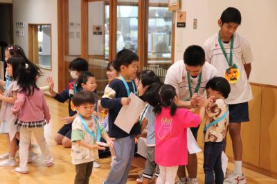 10月4日(水)、3年生が家庭科の学習でみさき保育園を訪問しました。幼児とのふれあいを通して特徴を理解していくことが目的ですが、3年生は、園児がよろこびそうなゲームを考えたり、賞品をつくったりしながら、自分たちも楽しんでいる様子でした。本番では、園児が大きな声で楽しそうにゲームをしている様子をみて、自分たちも笑顔になっている様子がとても微笑ましかったです。保育園の皆様、中学生の活動をこころよく受け入れていただき、ありがとうございました。
