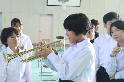 10月6日(金)みさき小学校の体育館でオルカブラス演奏会がありました。小学生と中学生が一堂に会して現役で活躍されているプロの生演奏を楽しむことができました。司会者の楽しい進行とともに,トランペット,フルート,ホルンなどの金管楽器の迫力を体感することができました。また,最後に楽器に触れて,実際に吹いてみる体験活動もあり,音が出る度に生徒の笑顔が溢れていました。オルカブラスのみなさん,ありがとうございました。