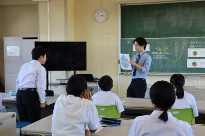 11月9日(水)、学校では、少人数でも意見が多様に出る道徳を目指して、ローテーション道徳を行っています。ローテーション道徳とは、年間計画に基づき、担任や副担任以外の先生が、「ふるさとが育む 道徳いしかわ」の教材を使って、授業を行うというものです。いろいろな先生と授業をすることで、価値項目に沿いながらも、多様な考えにふれる機会となります。ふだんとは、違った道徳に、生徒たちの意見もふだんとは違った意見が出て、授業が盛り上ががることもあります。今後も、多様な意見や見方にふれられるように取り組んでいきたいと思います。