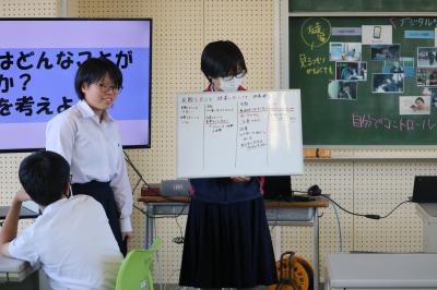 9月8日(金)生徒集会を行いました。執行部からは、デジタルデトックスの取組報告がありました。報告は、データを根拠としながらできたこと、できなかったことを報告し、報告について気がついたこと、思ったこと等、意見を出してもらう形で進みました。各委員会からの提案についても、意見を求められらたことについて、しっかりと自分の考えを発表できていました。また、単に質問への返答だけでなく、意見についてのやり取りが続いていくなど、大変、充実した集会となりました。互いに意見を交わし合う集会になるよう、今後も取り組んでいきましょう。