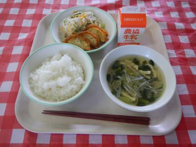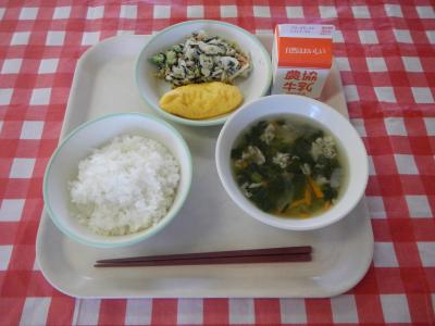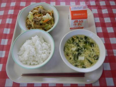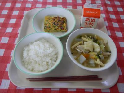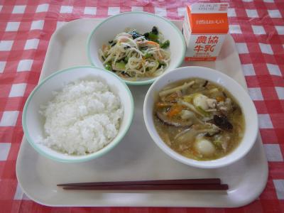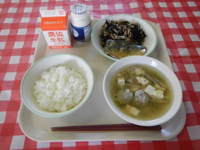 2024/11/13 ごはん、牛乳、肉団子、青菜いしる炒め、かきたまスープ