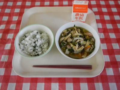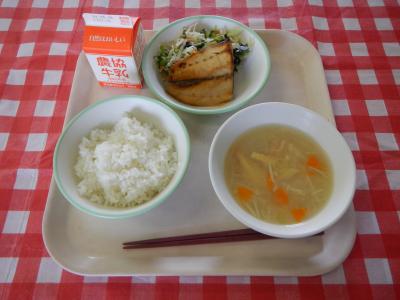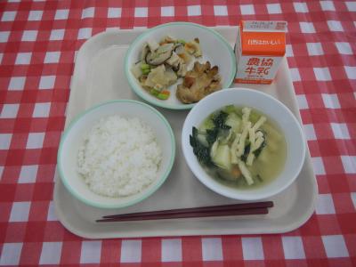 2024/10/15 ごはん、牛乳、さばの竜田揚げ、しめじ和え、なめこ汁
