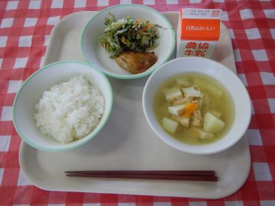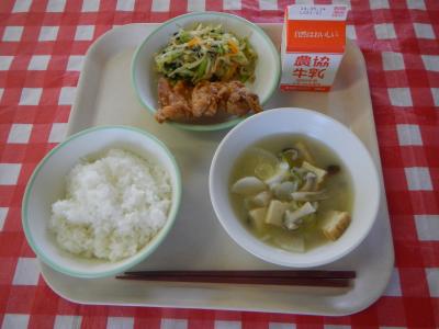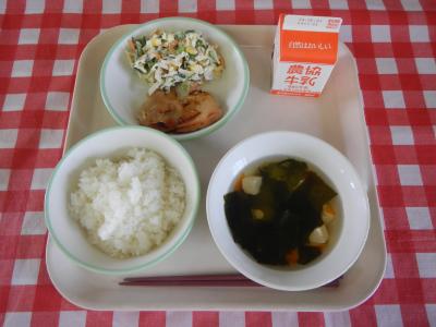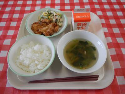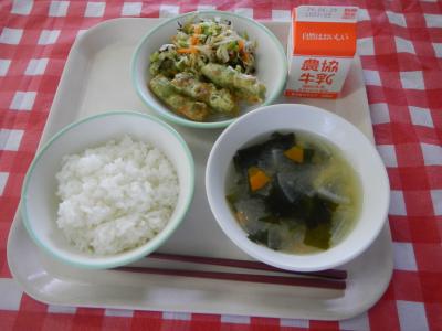 2024/11/12 ご飯、牛乳、鶏天、梅肉和え、みそ汁