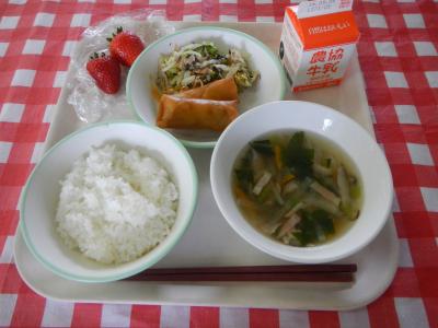 2024/11/21 ごはん、牛乳、春巻き、岩のりナムル、クッパ風スープ