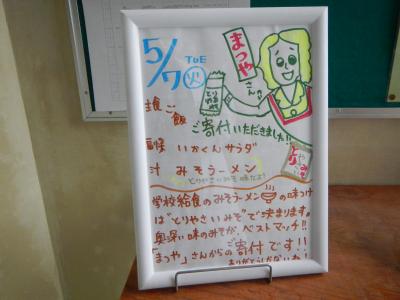 定期的に給食へ「とりやさいみそ」を寄付していただけている、まつやさんから、今月もとりやさい味噌を頂きました。
