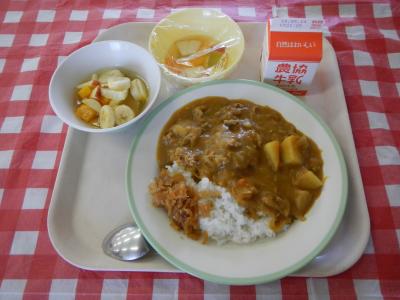 でもこのナタデココが嬉しいですね♪今日は2年生の育てたじゃがいもを使ったカレーライスでした。