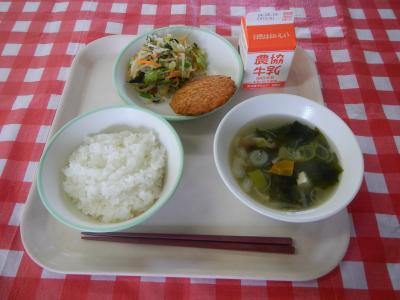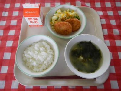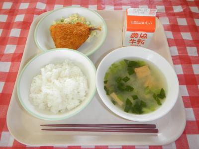 2024/9/12 ご飯、牛乳、コロッケ、ひじきの炒め煮、わかめのみそ汁