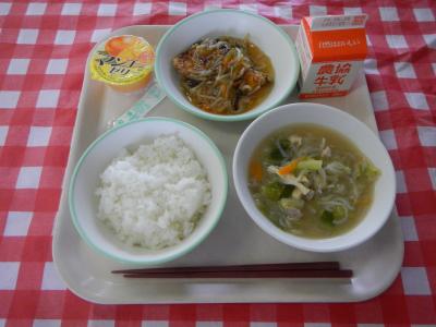 2024/10/8 ご飯、牛乳、筑前煮、かきたま汁、水ようかん