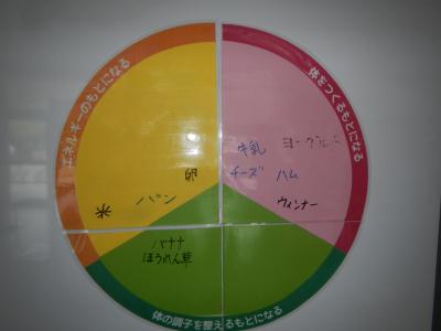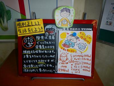 今月の目標は、「規則正しい生活をしよう」です。夏休みに甘やかしてしまった生活習慣を意識してもらうため、毎日の食育ボードにも啓発していきます。