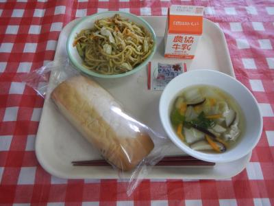 2025/6/25 プレーンパン、牛乳、焼きそば、中華スープ、ストロベリージャム