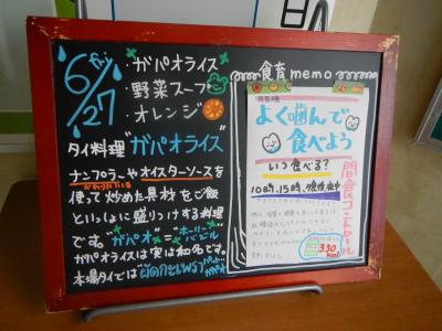 2025/6/27 ガパオライス、牛乳、野菜スープ、オレンジ