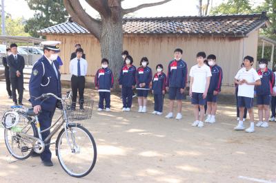 4月20日(木)6限に交通安全教室を行いました。珠洲署の方3人に来ていただき、グラウンドで安全な運転方法についての講義をしていただいた後、実際に模擬コースを走行して安全確認などの練習を行いました。あまり経験のない信号機のある交差点の2段階右折は、生徒にとっても難しく感じられたようです。しかし、コースを走りながら少しずつコツをつかんで完走することができました。今日学んだことを今後の登下校の安全運転に生かしていってほしいと思います。