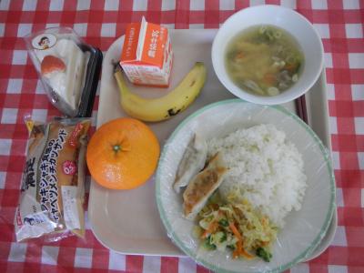 2024/02/16 ごはん、牛乳、ぎょうざ、キャベツ梅和え、みそ汁 支援物資
