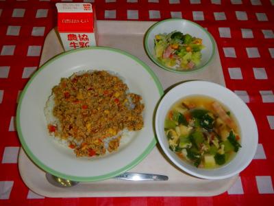 12/15 ガパオライス、牛乳、コールスローサラダ、卵スープ