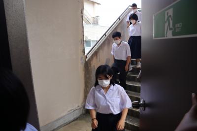 6月23日(金)、不審者対応避難訓練を行いました。珠洲警察署の方の協力で不審者が玄関から侵入したとの想定で訓練を行いました。玄関から生徒のいる場所への侵入を防ぐとともに、対話により決められた部屋に誘導すること等を不審者の言動に合わせて訓練することができました。応援の警察署の方の到着に合わせて、無事確保することができました。