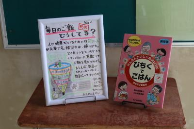 1月23日(火)、4週間目を迎えていますが、生徒たちからは、笑顔や会話が絶えません。よい雰囲気だと思います。しかし、避難生活の中、食事については、満足のいく食事をすることは難しいのではないかと思います。そこで、生徒に少しでも栄養バランスを考えた食事を意識してもらうために、食育と防災をかねたコーナーをつくって呼びかけています。新鮮な野菜が取れない時は、野菜ジュースをとるなど、避難所に届けられた物を上手に利用することで、栄養の偏りを防ぐこともできます。自分の健康は自分で守れるように、少しでも意識していきましょう。