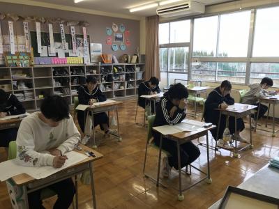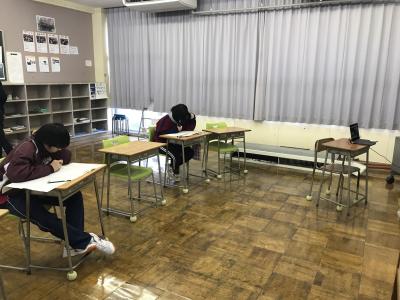 1月30日(火)、今日は、延期になっていた休み明けの実力テストを行いました。学校から帰っての避難生活の中では、思ったように勉強はできにくいと思いますが、生徒たちは、最後まで問題に取り組んでいました。また、リモートで参加している生徒も問題を配付することで、実力テストを受けることができました。