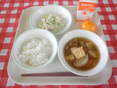 2023/11/20 ご飯、牛乳、マカロニサラダ、豚大根