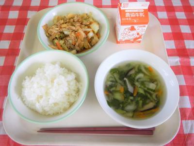 2023/6/21 ごはん、牛乳、ホイコーロー、春雨スープ