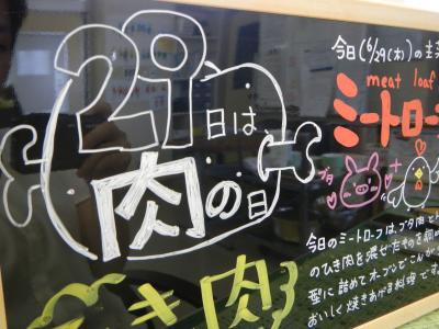 今日の主菜は肉の日にちなんで,手作りミートローフです。
