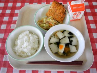 6/29 ごはん、牛乳、ミートローフ、キャベツのソテー、はんぺんのすまし汁