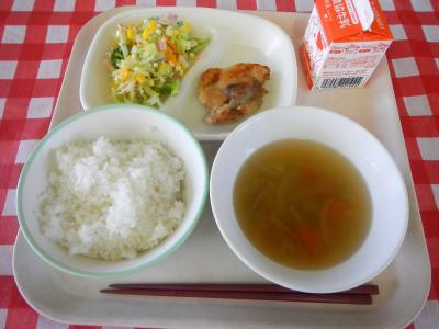 7/4 ごはん、牛乳、鶏肉の香草焼き、コールスローサラダ、オクラとトマトのスープ