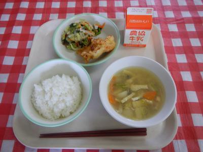 2024/11/12 ご飯、牛乳、鶏天、梅肉和え、みそ汁