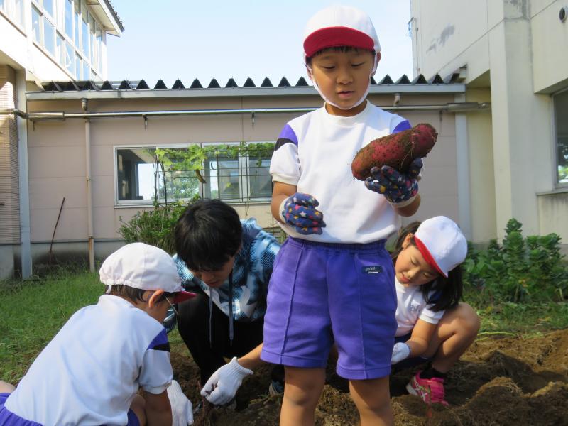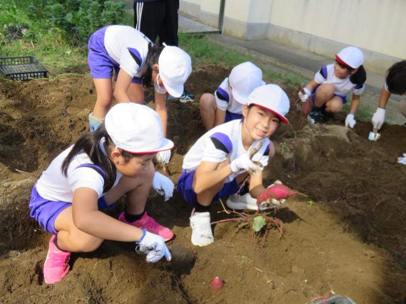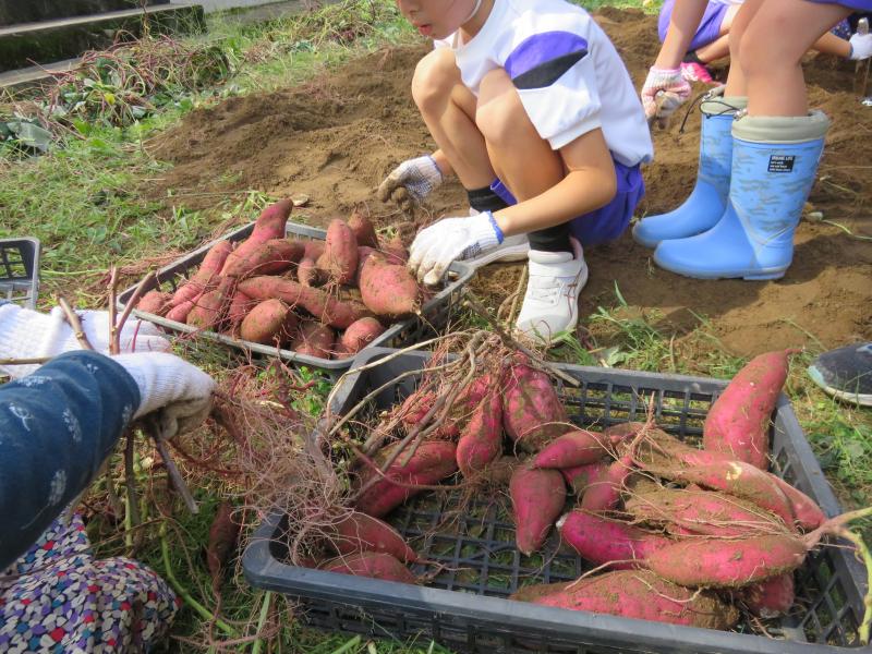秋の収穫時期を迎え、2年生は芋ほりをしました。今年は例年よりも豊作で、大きなさつまいもがたくさんとれました。