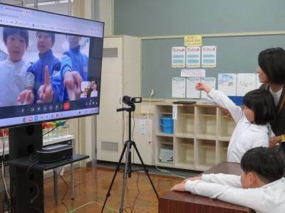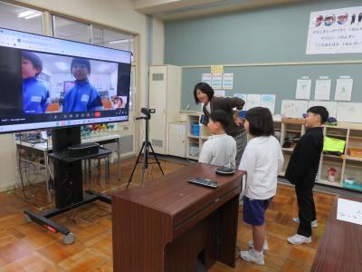 11月28日、南郷小学校の1年生とオンライン遠隔授業をしました。今回はお互いのことを知るために交流をしました。自己紹介や質問タイム、そしてゲームをしてたのしい時間をすごしました。いつもは3人で授業をしていますが、南郷小学校の1年生といっしょなので、いつもより多い人数でやり取りする経験ができてとてもよかったです。
