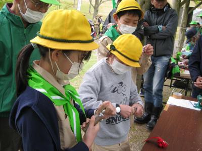 細くてやわらかいひもを2回、かたく結ぶのは大変そうでした。